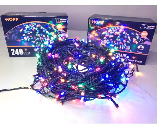 Instalatie brad Craciun, Hoff, 240 LED-uri multicolore, 23.9 m, controler, timer, interior / exterior