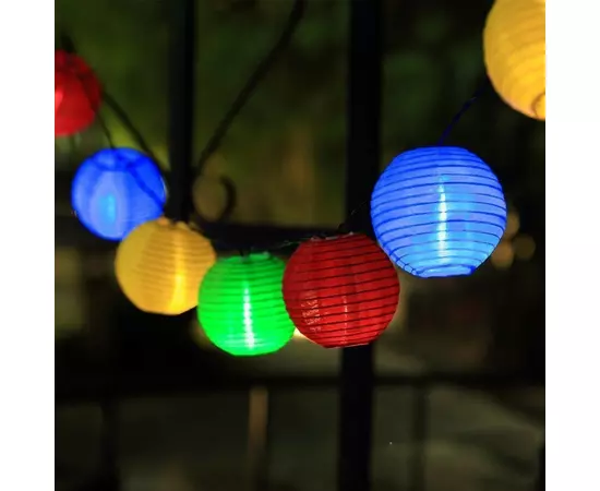 Instalatia solara cu 10 lampioane colorate are o lungime totala de 3.8 metri (din care 2 metri reprezinta cablul de alimentare si 1.8 metri este ocupat de cele 10 LED-uri amplasate la o distanta de 20 cm) si va aduce un plus de lumina si culoare. Modelul este realizat din plastic si are gradul de protectie IP44, ceea ce inseamna ca este protejata la patrunderea corpurilor straine solide mai mari de 1 mm si contra stropirii cu apa, fiind ideala pentru exteriorul locuintei, in curte, terasa sau gradina.