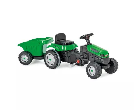 Jucarie pentru copii, tractor cu pedale + remorca, plastic, negru cu verde- INV7059594