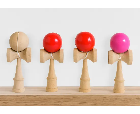 Realizată din lemn natural de înaltă calitate, kendama are o suprafață netedă, bine finisată, care oferă o aderență confortabilă în mână. Mânerul este proiectat ergonomic, permițând o prindere sigură și control precis în timpul jocului. Bila (tama) este vopsită într-un strat lucios, rezistent, disponibil în culori variate — roșu, albastru, roz sau natur — pentru a aduce un plus de stil și personalitate fiecărui model.