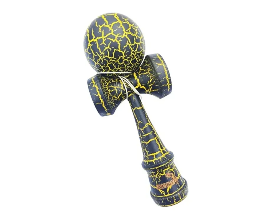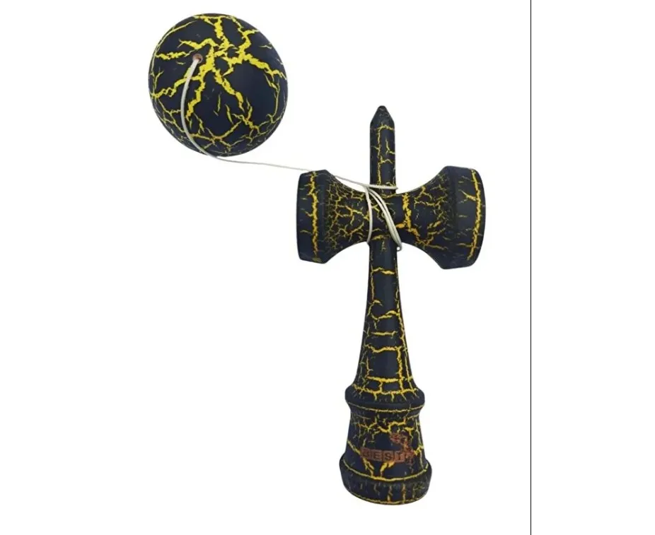 Kendama profesională din lemn, bilă negru-galben, 52KD - KEND309