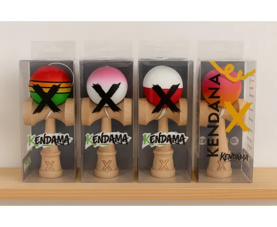 Kendama X 18 cm – model profesional din lemn cu bila colorată - KEND5510
