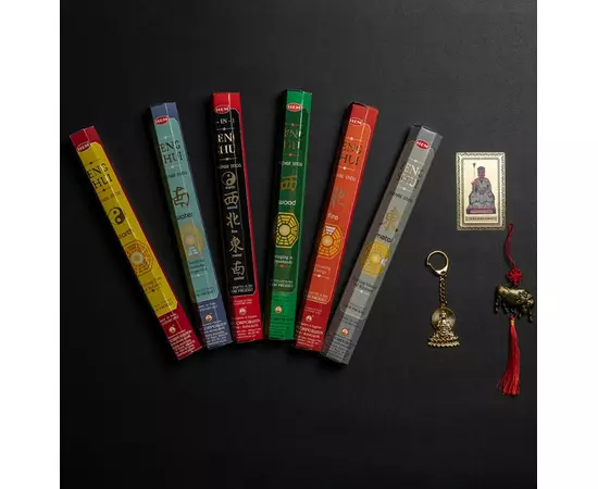 Creaza o atmosfera serena si relaxanta acasa sau la birou cu ajutorul kit-ului de aromaterapie Oranjollie!Kit-ul contine :6 cutii hexagon Betisoare parfumate Hem Feng Shui; aromele : Earth, Water, 5in1, Wood, Fire, Metal1 breloc Buddah