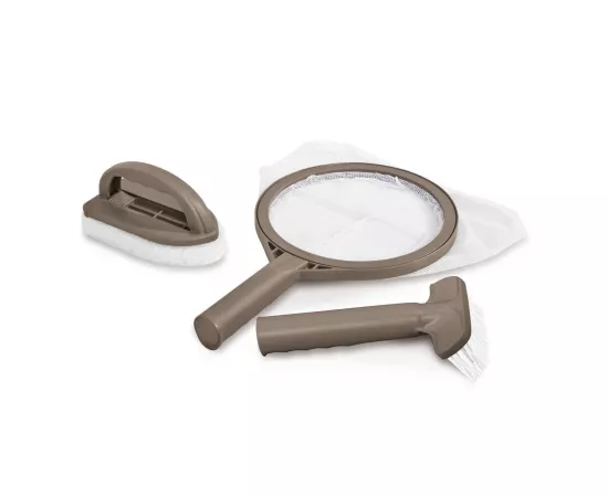 Setul este compus dintr-o plasa pentru curatat mizeria de la suprafetei piscinei, un burete si o perie pentru a curata mizeria de pe fundul si peretii piscinei.