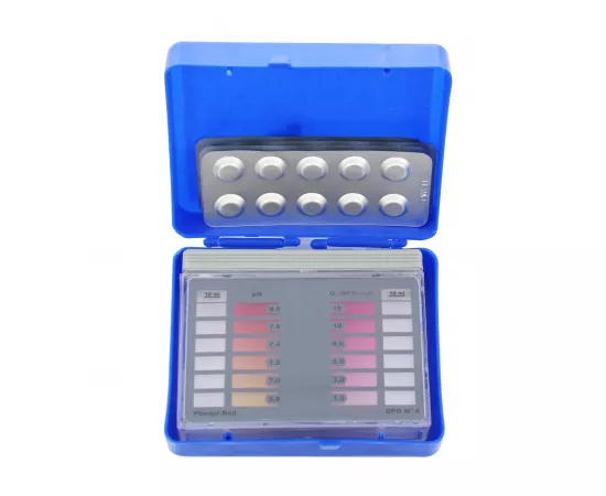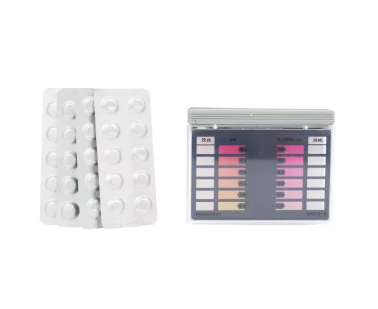Trusa de analiza pH / O2 contine 20 tablete de analiza pentru pH si 20 tablete de analiza pentru oxigen.