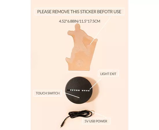 Lampa Decorativa 3D - Fotbalist Multicolor - 11x17cm
