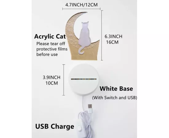 Lampa Decorativa 3D Pisica - 12 x 10 x 19 cm