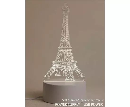 Lampa Decorativa 3D Turnul Eiffel 3 Culori - 11x17cm