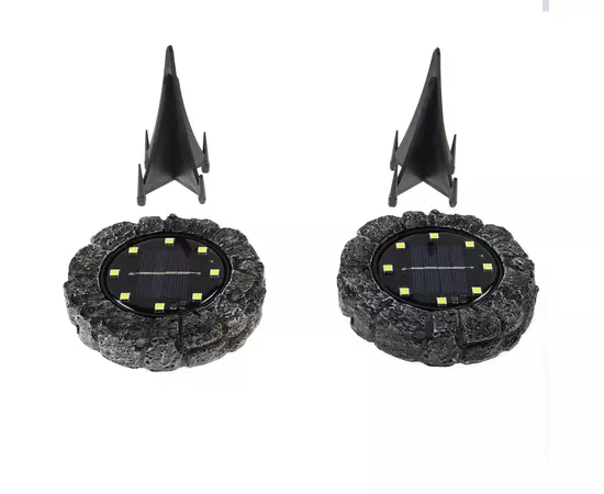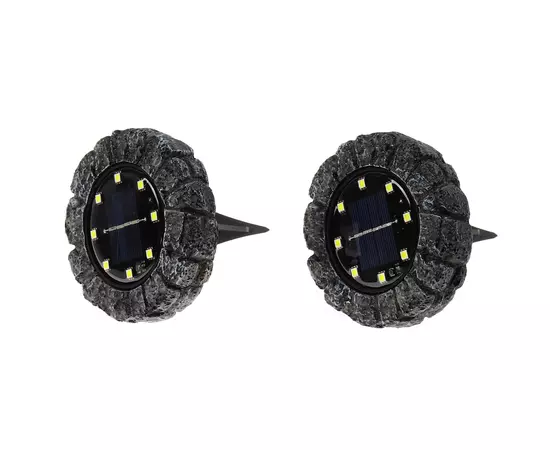 Setul de 2 lampi solare sunt ideale pentru curte, terasa sau gradina, aducand o lumina discreta. Lampa este confectionata din polirasina, fiind ideala pentru exteriorul locuintei (grad de protectie la factorii de mediu IP44).