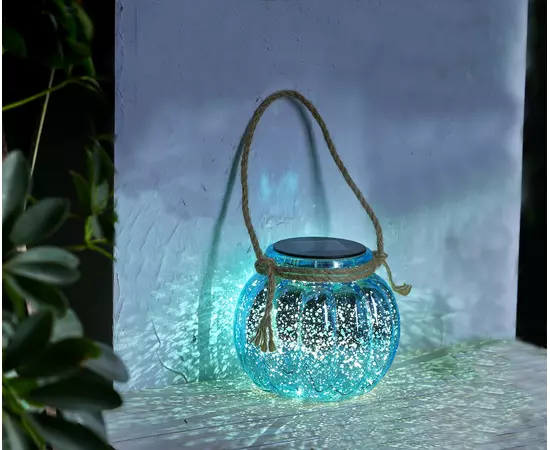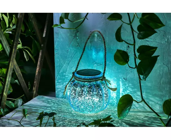 Lampa solara cu LED are forma unui borcan de culoare albastru metalic, diametrul de 14.5 cm, inaltimea de 13 cm (nu este cuprinsa si sfoara in aceasta masuratoare) si este ideala pentru amplasarea in curte, terasa sau gradina. Modelul are gradul de protectie IP44, ceea ce inseamna ca este protejata la patrunderea corpurilor straine solide mai mari de 1 mm si contra stropirii cu apa, fiind ideala pentru exteriorul locuintei.