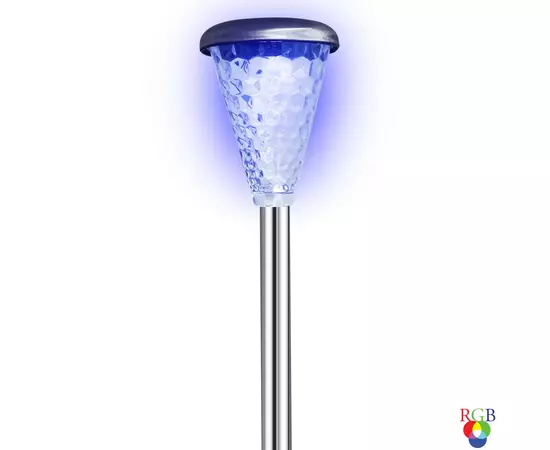 Lampa solara cristal este prevazuta cu o sursa LED RGB (modelul de culori RGB este un model de perceptie a culorii in care se combina impreuna culorile de baza rosu, verde si albastru in diferite moduri pentru a reproduce o gama larga de culori), ce isi schimba culoarea, iar acumulatorul are capacitatea de 100 mAh.