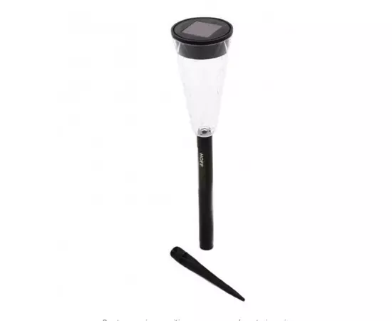 Lampa solara LED este realizata din plastic de culoare neagra sau verde si are dimensiunile 375 x 70 mm (inaltime x diametru).