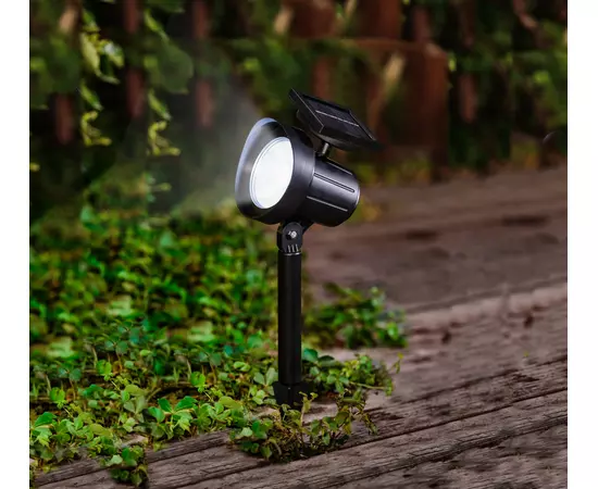 Lampa solara sub forma de proiector ofera un iluminat decorativ, ce va infrumuseta orice spatiu, fiind prevazuta cu un LED SMD cu lumina rece (6500 - 7000 K), avand un flux luminos de 15 lumeni, iar panoul solar are capacitatea de 400 mAh.