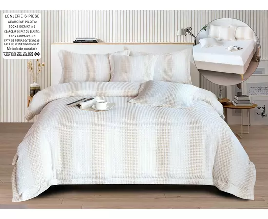 Lenjerie 6 piese bumbac fin cu in gofrat