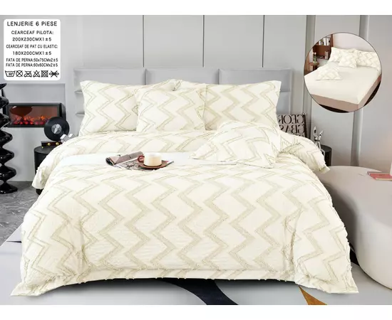 Lenjerie Bumbac Fin, Gofrat 6 Piese cu Elastic