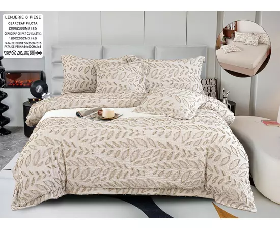 Lenjerie Bumbac Fin, Gofrat 6 Piese cu Elastic