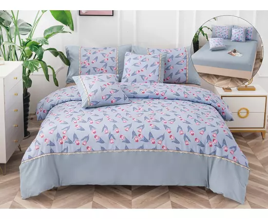 Lenjerie de pat realizata din bumbac fin - 6 Piese (cearsaf de pat cu elastic)