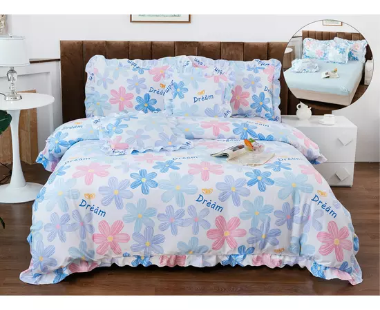 Lenjerie de pat realizata din bumbac finet - 6 Piese (cearsaf de pat cu elastic)