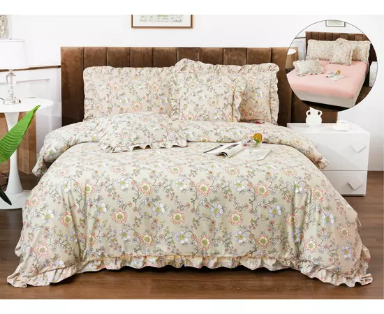Lenjerie de pat realizata din bumbac finet - 6 Piese (cearsaf de pat cu elastic)