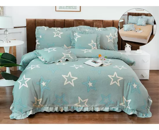 Lenjerie de pat realizata din bumbac finet - 6 Piese (cearsaf de pat cu elastic)