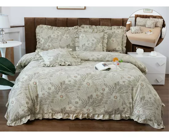 Lenjerie de pat realizata din bumbac finet - 6 Piese (cearsaf de pat cu elastic)