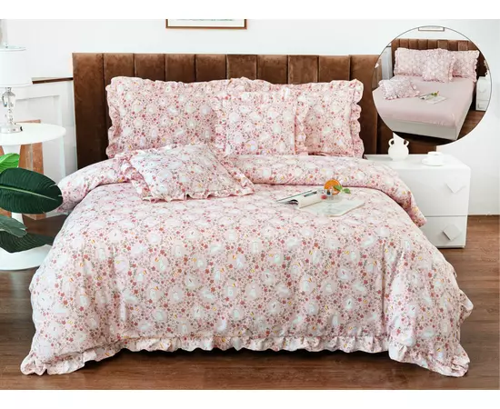 Lenjerie de pat realizata din bumbac finet - 6 Piese (cearsaf de pat cu elastic)