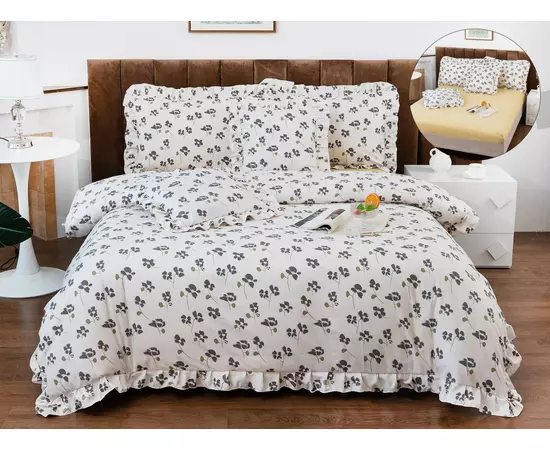 Lenjerie de pat realizata din bumbac finet - 6 Piese (cearsaf de pat cu elastic)