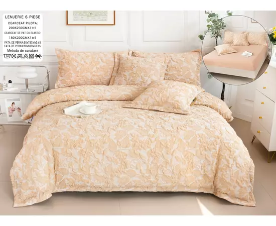 Lenjerie Bumbac Fin, Gofrat 6 Piese cu Elastic