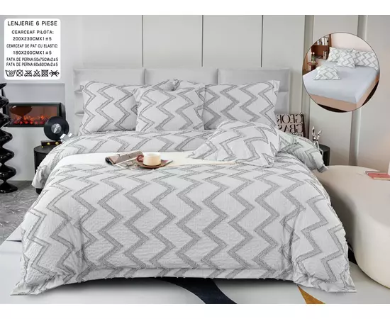 Lenjerie Bumbac Fin, Gofrat 6 Piese cu Elastic