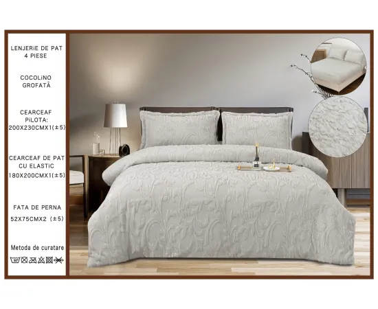 Lenjeria de pat cu 4 piese, Cocolino, cu blana de iepure artificiala, adauga o nota de lux si confort in dormitorul dumneavoastra. Aceasta lenjerie de pat premium este conceputa pentru a oferi o experienta de somn deosebit de placuta si pentru a aduce o atingere de eleganta in incaperea dumneavoastra.