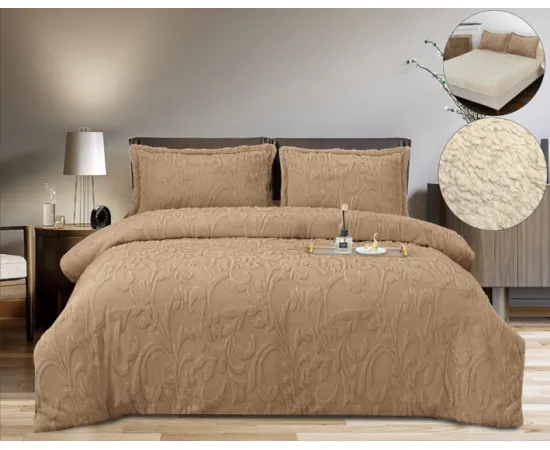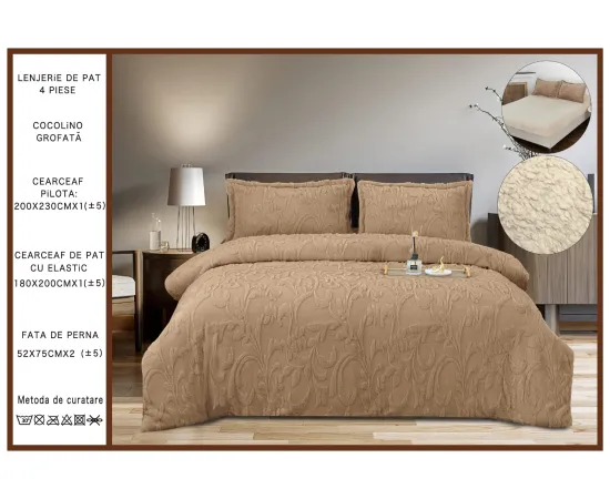 Lenjerie Cocolino 4 Piese, Blana Imitatie iepure, Pentru Pat Dublu, cu Elastic, Maro - PIT406