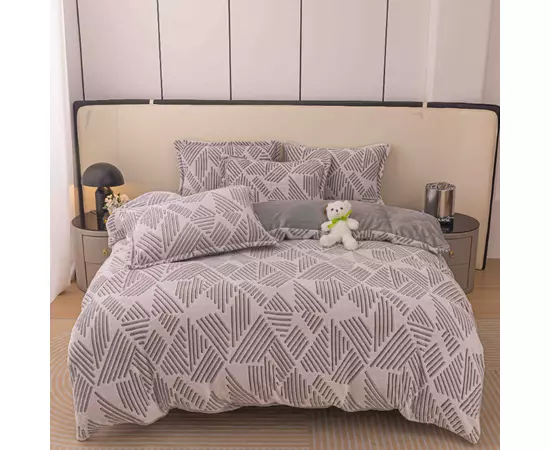 Lenjerie Cocolino 4 Piese Pentru Pat Dublu cu Elastic- JO282 Dungi Gri