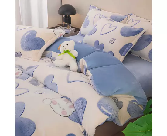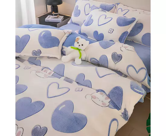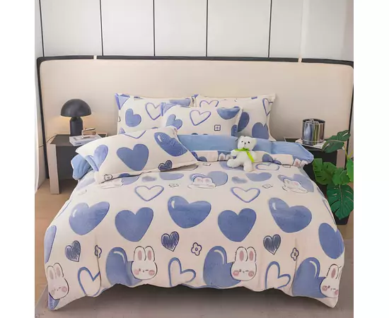 Lenjerie Cocolino 4 Piese Pentru Pat Dublu cu Elastic- JO285 Inimi Albastre