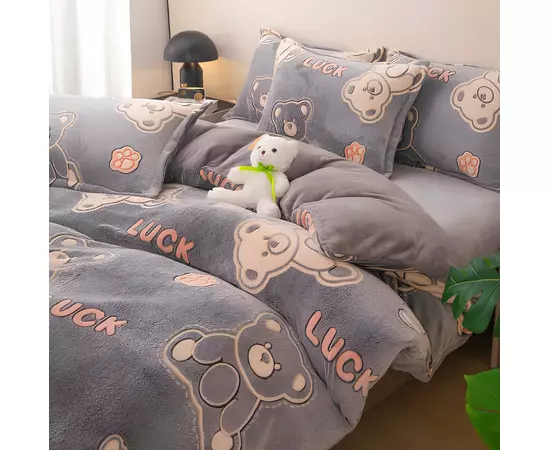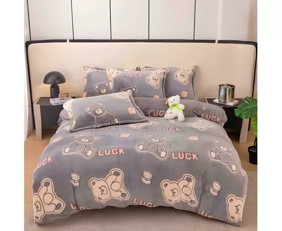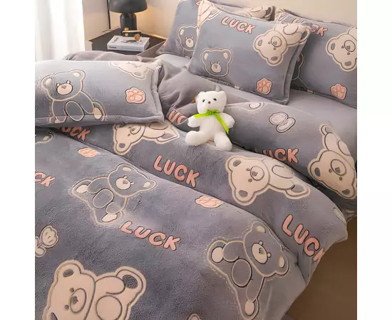 Lenjerie Cocolino 4 Piese Pentru Pat Dublu cu Elastic - JOJ644 Urs Albastru