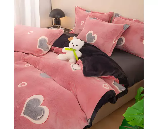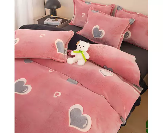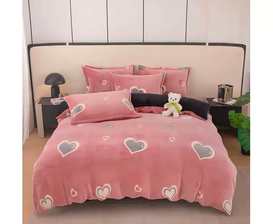 Lenjerie Cocolino 4 Piese Pentru Pat Dublu cu Elastic - JOJ645 Roz cu Inimi