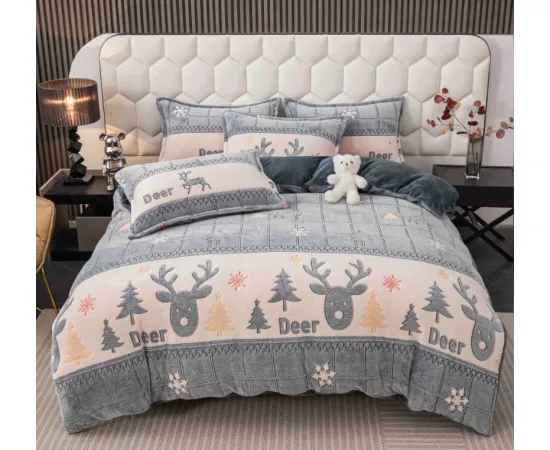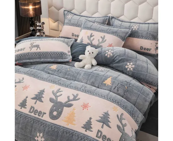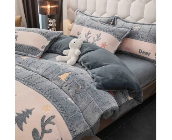 Lenjerie Cocolino 4 Piese Pentru Pat Dublu cu Elastic- JOJ810 Ren Gri