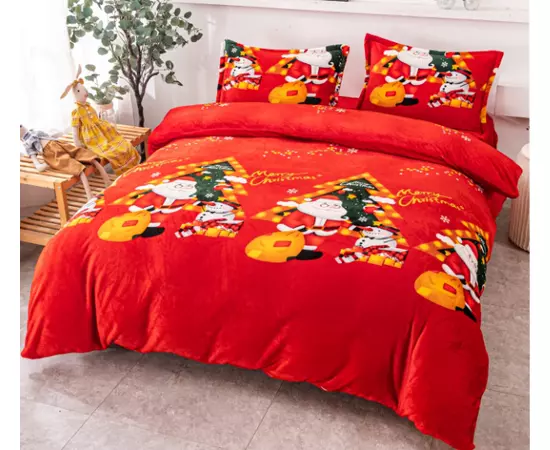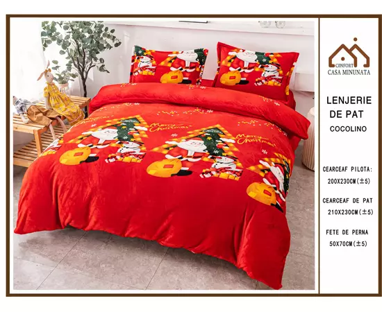 Lenjerie Cocolino 4 piese pentru pat dublu cu Mos Craciun- PIT03