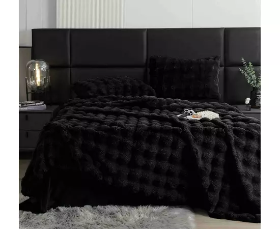 Lenjerie Cocolino Cu Blanita de Iepure Pentru Pat Dublu, 6 piese, Negru - JO712