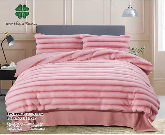 - Design elegant: Cu un design fermecător de blăniță de iepure, această lenjerie aduce o notă de lux și eleganță în camera dumneavoastră. Colecția este disponibilă într-o varietate de culori, pentru a se potrivi cu orice stil de decor.