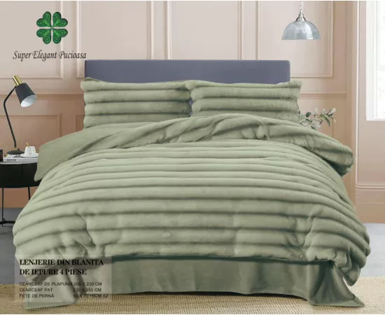 - Confort extraordinar: Blănița de iepure adaugă o notă de căldură și confort, astfel încât veți experimenta un somn de neuitat. Materialul moale și plăcut la atingere este perfect pentru sezonul rece, asigurându-vă că vă veți relaxa complet în această lenjerie minunată.
