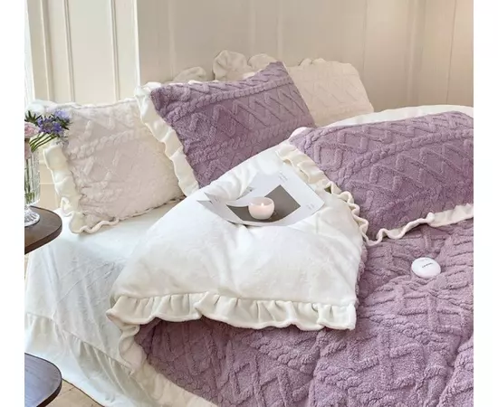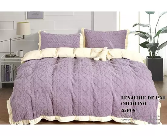 Lenjerie Cocolino Cu Blanita Pentru Pat Dublu, 4 piese, Lila- LJ1004