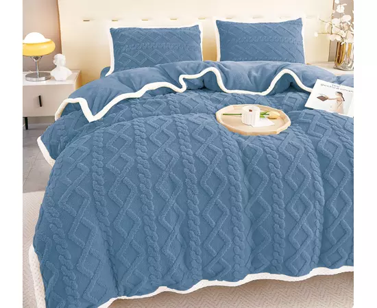 Setul de lenjerie este confectionat din microfibra plusata, cu o textura pufoasa, foarte calduroasa si placuta la atingere si care nu intra la apa. Se poate spala la 30 de grade Celsius si nu necesita calcare dupa spalare.