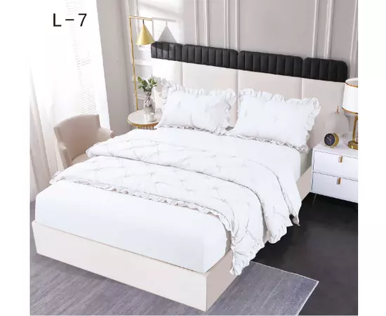- Design cu volane elegante: Volanele adaugă un element de eleganță și rafinament, conferind un aspect romantic și sofisticat întregii lenjerii. Aceste volane pot fi amplasate pe marginile cearșafului de pat și ale pernelor, creând un efect plin de farmec.