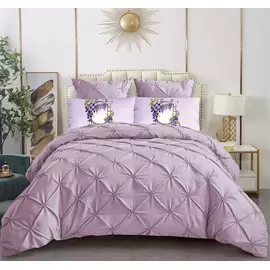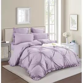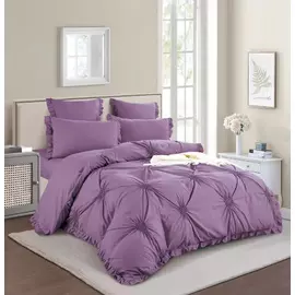 Lenjerie de Pat Finet, Pliuri Brodate cu Elastic, 4piese, Lila - PUC128
