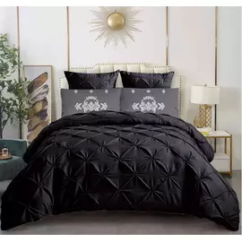 - Set complet de 4 piese: Setul este compus din cearșaf de pat, cearșaf de pat cu elastic (frezat), și două fețe de pernă asortate. Acest set complet asigură că întregul pat este îmbrăcat într-o lenjerie armonioasă și elegantă.