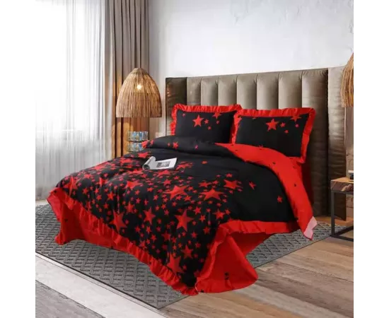 Lenjerie de Lux cu Volanase pentru pat dublu din Bumbac FINET satinat gros - 4 Piese!