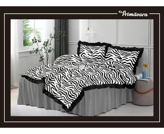 Lenjerie de Lux cu Volanase pentru pat dublu din Bumbac FINET Gros - CPL281