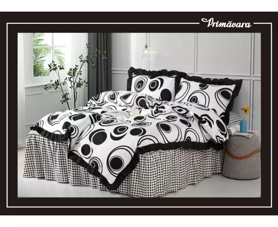 Lenjerie de Lux cu Volanase pentru pat dublu din Bumbac FINET Gros - CPL273