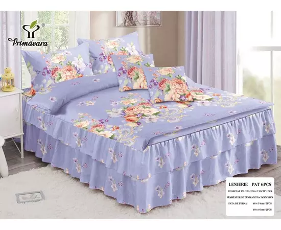Cearceaful de pat are prins pe fiecare colt cate un elastic care vine prins sub saltea, pentru a nu permite alunecarea cearceafului de pe pat. Pe partea de jos a ceracefului de pat, aveti asezate superbele volanase, care ofera acestor modele eleganta si rafinament. Fetele de perna se inchid cu flep (petrecute). Mod ambalare: punga cu manere, fiind ideala pentru cadou.