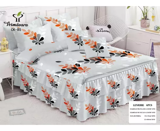 Cearceaful de pat are prins pe fiecare colt cate un elastic care vine prins sub saltea, pentru a nu permite alunecarea cearceafului de pe pat. Pe partea de jos a ceracefului de pat, aveti asezate superbele volanase, care ofera acestor modele eleganta si rafinament. Fetele de perna se inchid cu flep (petrecute). Mod ambalare: punga cu manere, fiind ideala pentru cadou.